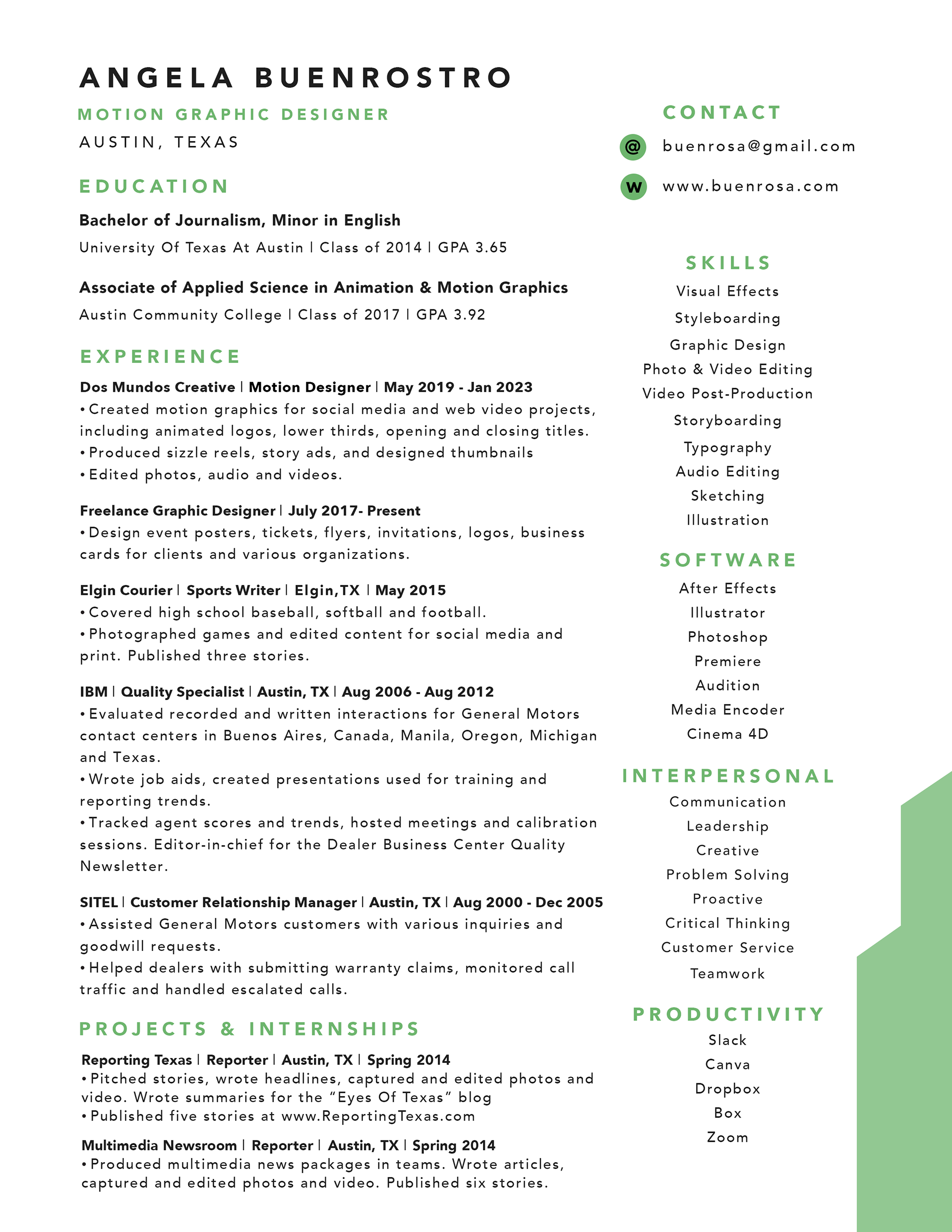 Let's work together! Feel free to email me at Buenrosa@gmail.com or use the contact form. Check out my resume below or click here. Thanks for stopping by!