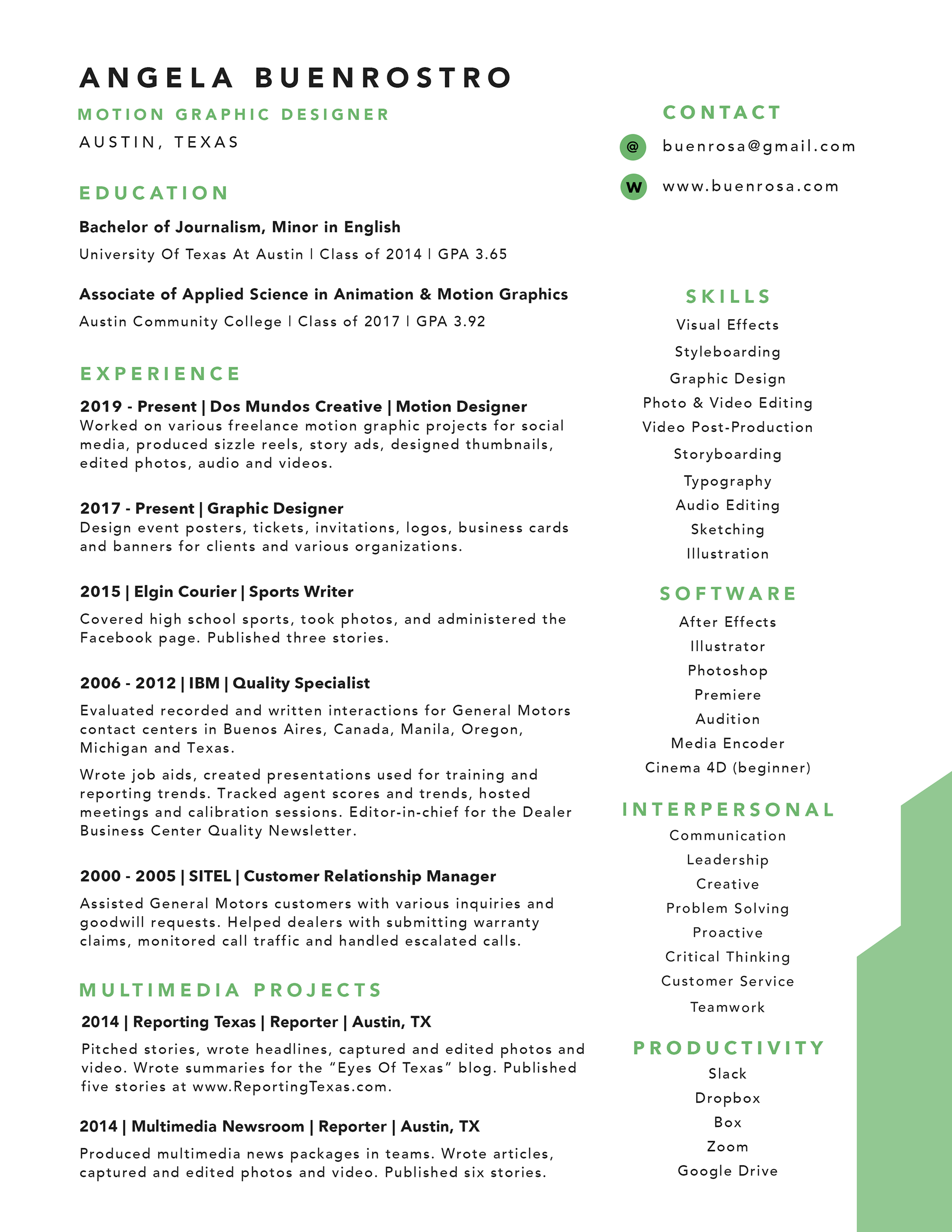 Let's work together! Feel free to email me at Buenrosa@gmail.com or use the contact form. Check out my resume below or click